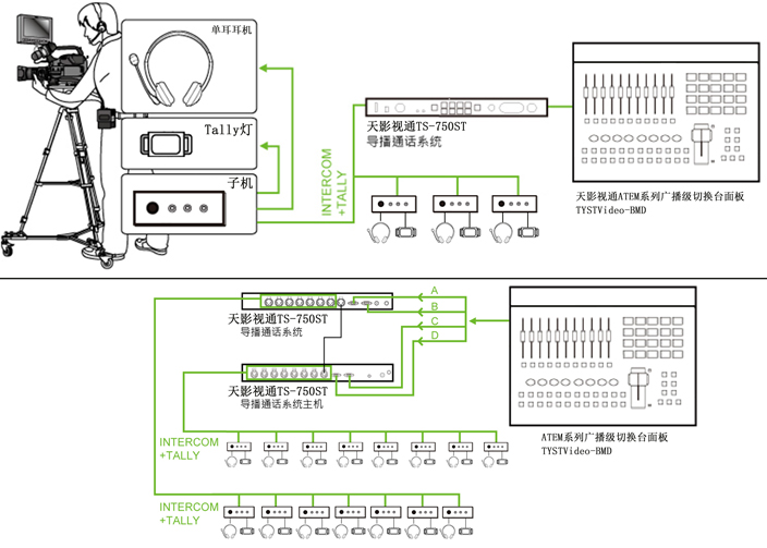 Tally提示燈: 通過3.5音頻線連接通話子機終端和tally提示燈。 備注:標配1.2米Tally線和Tally提示燈4個; |
