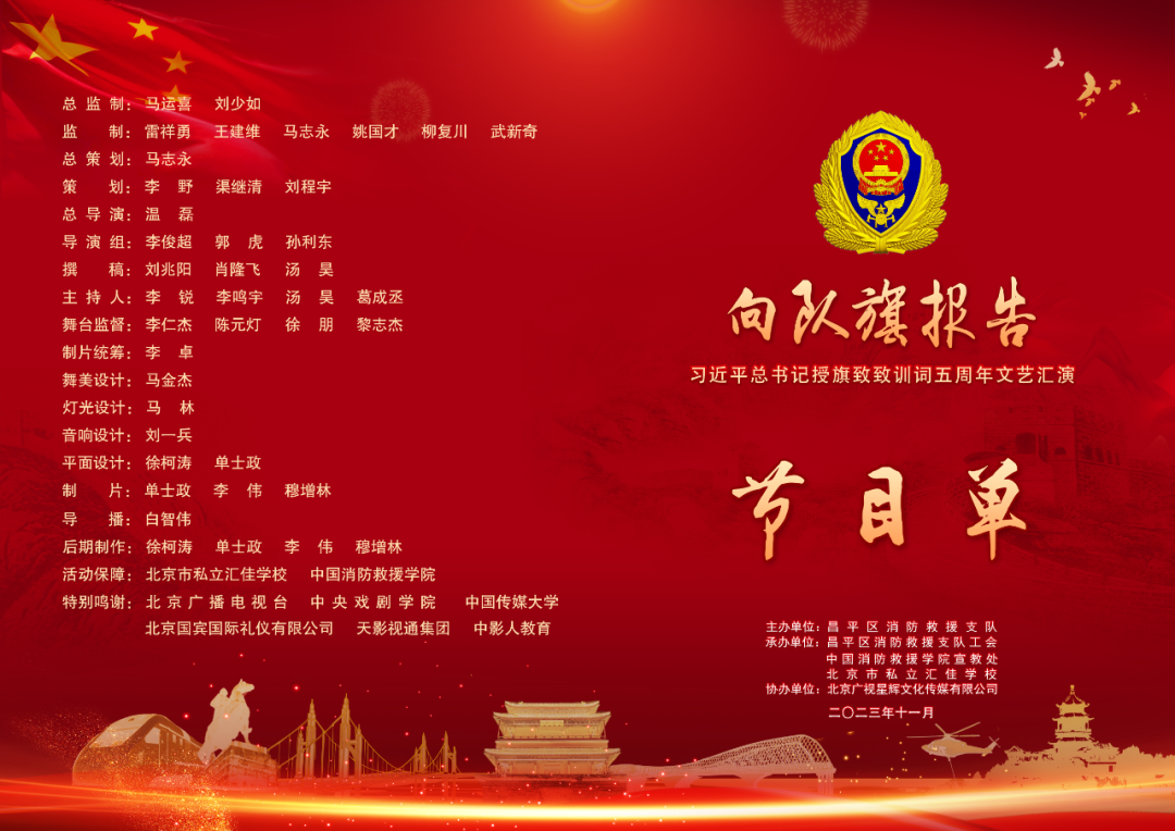 2023年11月9日,由北京市昌平區消防救援支隊主辦,在北京匯佳學校舉行的“向 隊旗報告”五周年文藝匯演圓滿結束。