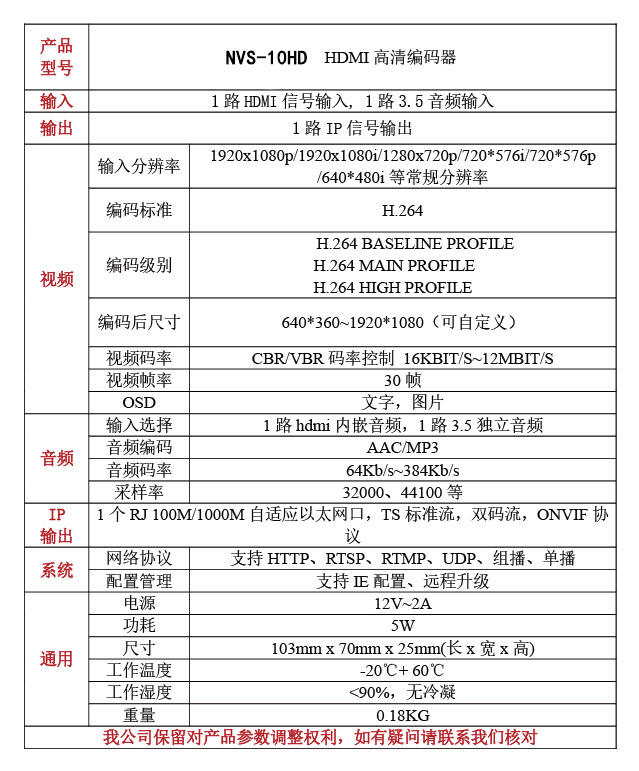 NVS-10HD高清HDMI編碼器是專業(yè)的高清音視頻編碼產(chǎn)品,該產(chǎn)品支持1路高清HDMI音視頻采集功能,1路3.5MM獨(dú)立音頻接口采集功能。編碼輸出雙碼流H.264格式,音頻MP3/AAC格式。編碼碼率可調(diào),畫面質(zhì)量可控制。支持HTTP/RTSP/RTP/RTMP/UDP等協(xié)議傳輸。使用非常方便,插上網(wǎng)線即可使用,省去拆機(jī)麻煩,不存在和電腦硬件兼容性問(wèn)題。