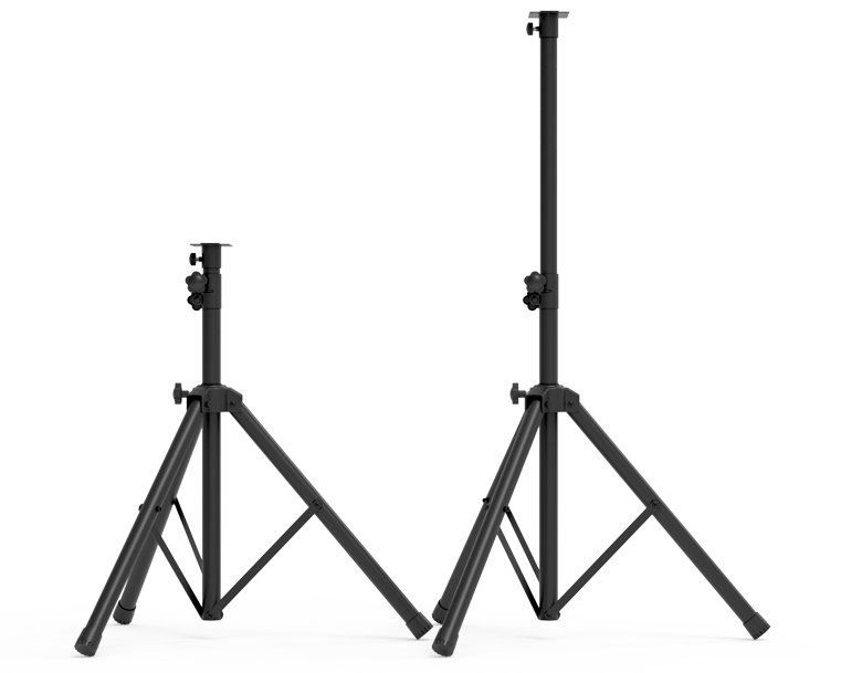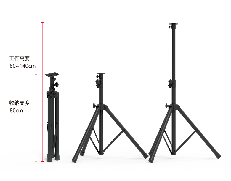 天影視通TY-TCQ001三腳架采用冷軋鋼材質鍛造成型,采用1.5mm鐵質管為主體,外管和支腿管直徑40mm,支撐管直徑35mm,云臺托板可水平360度旋轉,工作高度80-140cm,手擰螺絲設計,收放方便,