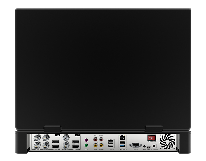 | 輸出接口 | PMG SDI 2路, PGM HDMI 1路, 多畫面輸出 1路, 音頻監聽 1路, 模擬音頻輸出 2路, tally輸出 1個(8路雙色), |
